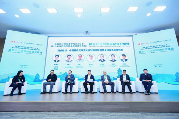 圆桌论坛由低碳经济学院副院长王珂英主持。来自英国爱丁堡龙比亚大学商学院会计与金融学终身教授高善生,华中科技大学国家治理研究院副院长、“华中卓越学者”特聘教授孙永平,台湾东华大学教授、兼任台湾金融教育协会秘书长侯介泽,北京中创碳投科技有限公司董事长唐人虎,北京绿色金融协会副会长、中碳科技董事长马险峰,武汉双碳产业研究院院长阎忠宁,围绕中国开启气候变化应对新征程引领全球绿色低碳转型,从多个维度展开交流。