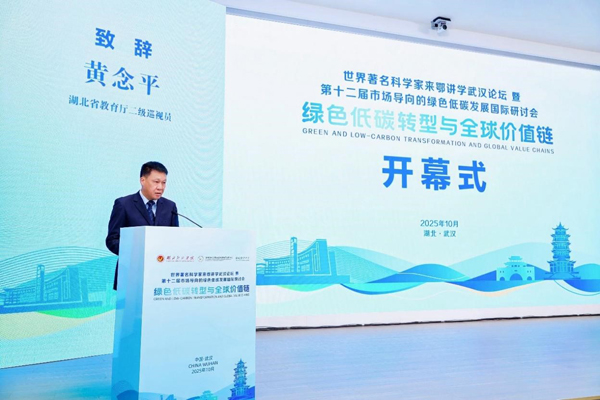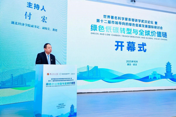 10月25日,世界著名科学家来鄂讲学武汉论坛暨第十二届市场导向的绿色低碳发展国际研讨会在我校举办。会议由我校主办,碳排放权交易省部共建协同创新中心、低碳经济学院、《环境经济研究》杂志社承办,主题是“绿色低碳转型与全球价值链”。来自中国内地、中国香港、中国台湾、美国、英国、瑞士、奥地利、澳大利亚、日本、泰国等10多个国家和地区的著名科学家和专家学者,省政协、省自然资源厅、省生态环境厅、省教育厅相关部门领导,10余家期刊负责人,20多位企业代表,华中科技大学、武汉大学、中国地质大学(武汉)、昆明理工大学、南京财经大学等20多所高校的专家学者参会。