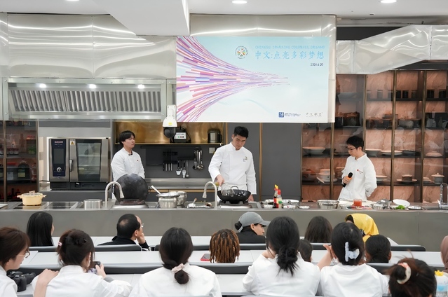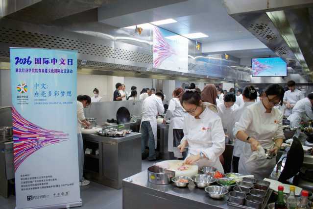 为传承中华优秀传统文化,搭建中外文化交流桥梁,4月20日(星期一)下午,湖北经济学院2026年“国际中文日”活动在烹饪实训中心顺利举行。本次活动以“饮食类非遗文化国际交流”为主题,由汉语国际推广中华饮食文化培训基地联合国际交流与合作处、旅游与酒店管理学院(楚菜现代产业学院)、国际教育学院共同主办,80余名来自国际教育学院的留学生与烹饪与营养教育专业学生齐聚一堂,以非遗美食为载体,共赴一场跨越国界的文化之约。